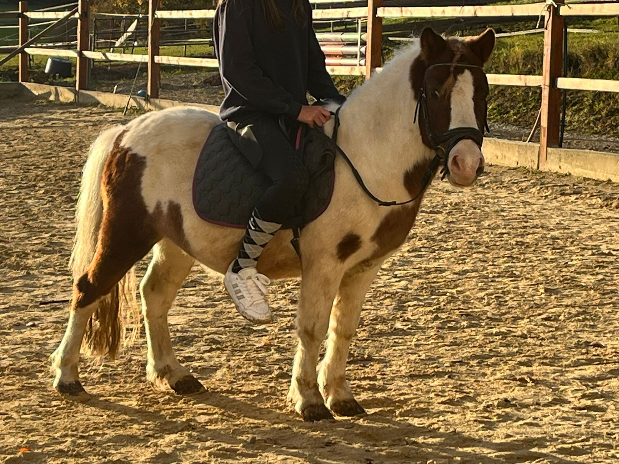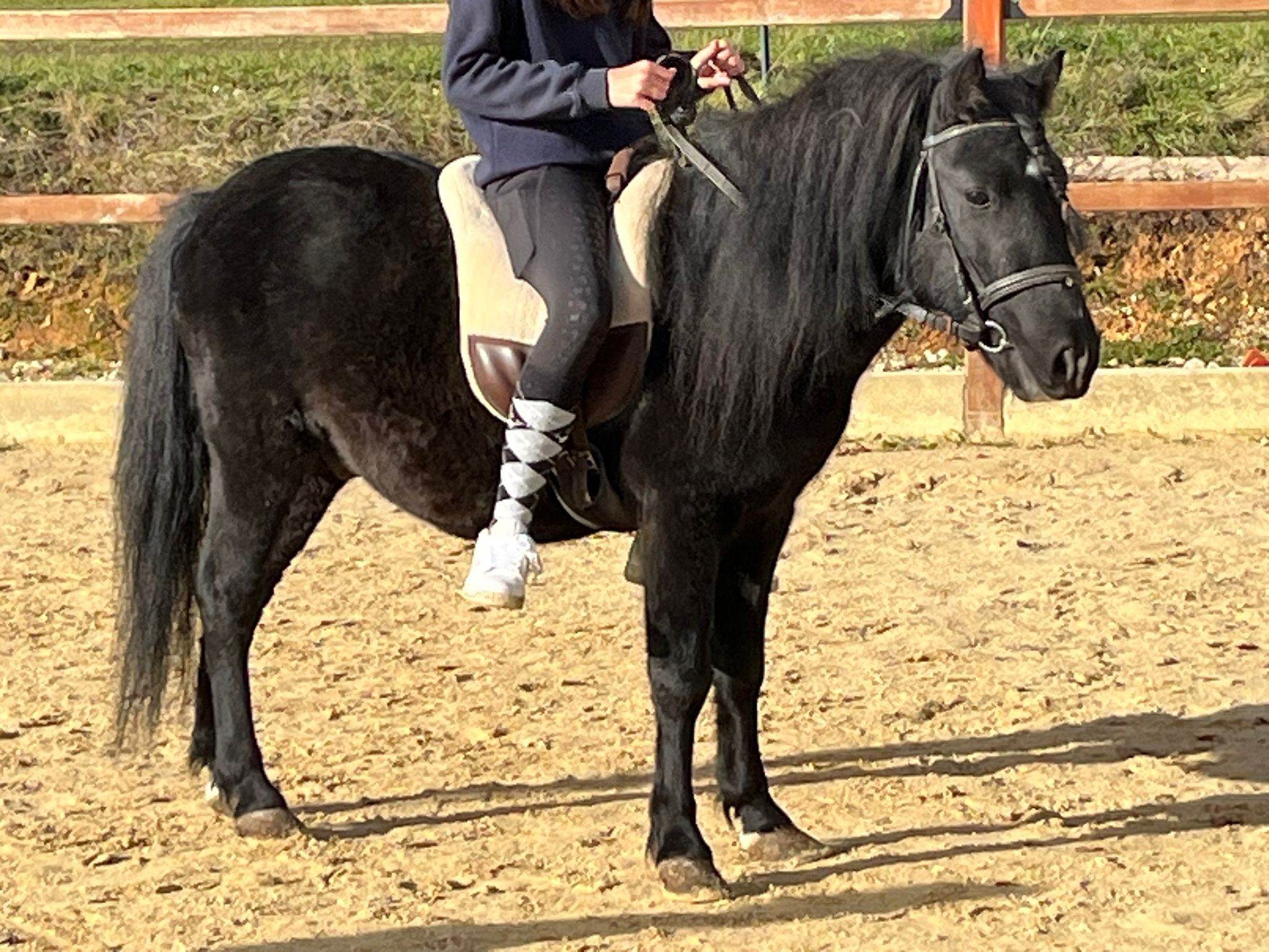 geb. 2019, Dressurpony, liebt Gelände und Longenunterricht; für Anfänger geeignet.
