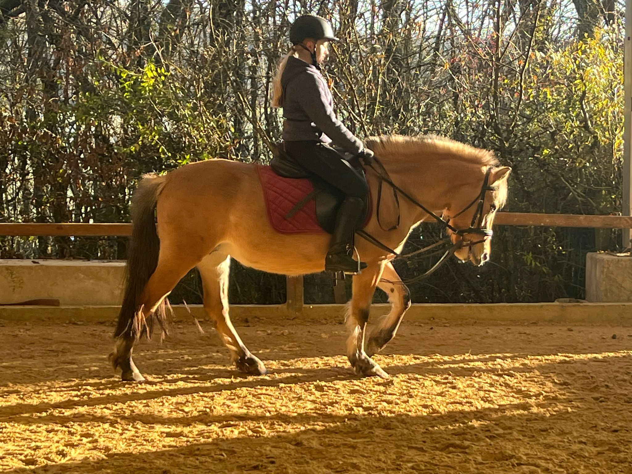 geb. 2020, ein Lausbub. Unterwegs im Gelände, auf dem Reitplatz und beim Schlittenfahren.